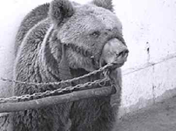 Sie wurden auf heissen Metallplatten abgerichtet und an einer Eisenkette gehalten. Die kurze Kette war an einem Ring befestigt, der die Nase durchbohrt - das empfindlichste Organ eines Bären.
