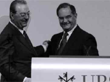 ![]() UBS CEO Oswald J. Grübel verabschiedet sich vom scheidenden Verwaltungsratspräsident Peter Kurer. /
