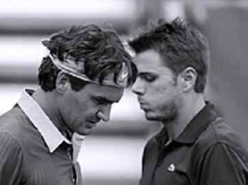Roger Federer und Stanislas Wawrinka bei einem Seitenwechsel. / Foto: EQ Images