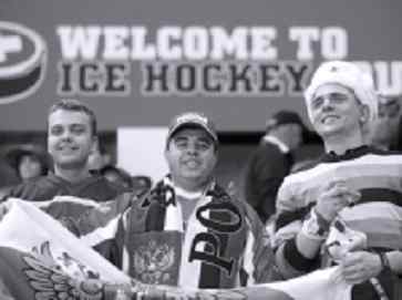 An der Eishockey-WM nehmen die Nationalteams von 16 Ländern teil. Die WM dauert bis zum 10. Schweizer Eishockey-Fans in Festlaune vor dem ersten Spiel ihrer Mannschaft gegen die Franzosen. /
