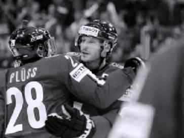 ![]() Captain Mark Streit gratuliert dem Torschützen Martin Plüss zum 1:0. /