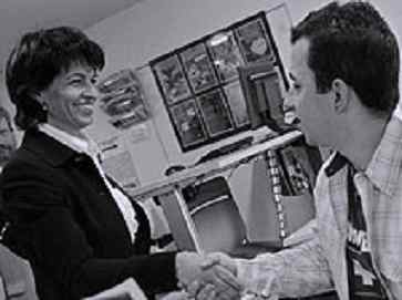 Praktika und Übungsfirmen zu nutzen Die Volkswirtschaftsministerin rief die Sozialpartner dazu auf, die arbeitsmarktlichen Massnahmen (Praktika und Übungsfirmen) zugunsten der Jugendlichen zu nutzen. Für das laufende Jahr seien dafür 494 Mio. Fr.Leuthard beim Rundgang durch eine Übungsfirma mit einem Kursteilnehmer.