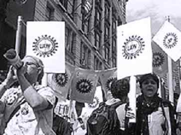39-Prozent-Anteil für Gewerkschaften GM steht bei den Gewerkschaften mit rund 20 Milliarden Dollar für den Gesundheitsfonds der Betriebsrentner in der Pflicht. Diese Summe will GM halbieren sowie weitere Zugeständnisse bei den Lohnkosten erreichen. Im Gegenzug hat der Autobauer der UAW einen Anteil von 39 Prozent am Konzern angeboten, der Staat soll nach bisherigen Plänen 51 Prozent bekommen.Manifestation von Mitgliedern Automobilarbeitergewerkschaft UAW. /