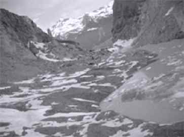 Unter Beobachtung steht weiterhin auch das restliche Rutschpaket der Moräne, das in den Gletschersee zu stürzen droht.
