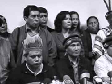 Indios geben ihre Forderungen bekannt: Sie wehren sich gegen ein neues Freihandelsabkommen mit den USA. /