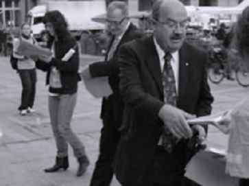 Mit ihrer umstrittenen Plakatkampagne «Alles Lügner? Alles Profiteure? Alles Dealer?» habe die Schweizerische Flüchtlingshilfe die Menschen zum Nachdenken anregen wollen, sagte Beat Meiner, Generalsekretär des Flüchtlingshilfe, in seiner Rede auf dem Bundesplatz.