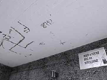 ![]() Ein Hakenkreuz und die Postleitzahlen von Küsnacht an der Betondecke auf dem Pausenplatz der Schule. /