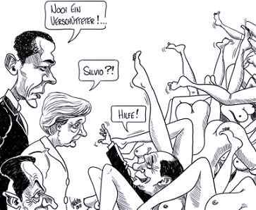 ![]() Die Verlegung des G8-Gipfels ins italienische Erdbebengebiet ist kein Ablenkungsmanöver des peinlichen «Papi»-Premiers. Lächerlich, diese ständigen Verschwörungstheorien der linken Journaille.