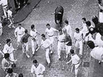 ![]() Am Freitag war ein 27-jähriger Spanier nach einer Stierhatz seinen Verletzungen an Hals, Herzschlagader und Lunge erlegen. Bis zu 2000 Teilnehmer Das Stiertreiben findet bis Dienstag jeden Morgen statt. Dabei werden sechs Bullen auf einen 825 Meter langen Parcours geschickt, bis zu 2000 hauptsächlich männliche Teilnehmer laufen vor ihnen her und versuchen, sich nicht erwischen zu lassen. Tierschützer kritisieren die Veranstaltung scharf. Berühmt wurde der Encierro vor allem durch Ernest Hemingway, der dem Ereignis in seinem Roman «Fiesta» ein literarisches Denkmal setzte. Besonders junge Männer aus angelsächsischen Ländern fühlen sich auf Hemingways Spuren alljährlich von dem gefährlichen Ritual angezogen. Der Schriftsteller nahm selber jahrelang am Encierro teil.