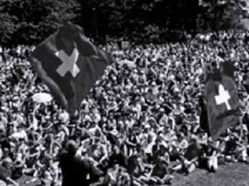 ![]() Schweizerpsalm und Fahnenschwingen auf dem Rütli.