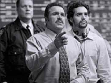 ![]() John Johnson (Michael Rispoli, l.) und Delgado (Ramon Rodriguez, r.) beobachten die Fahrt der U-Bahn auf dem Monitor in der Schaltzentrale. /