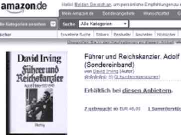 Wilhelm Stäglich taucht bei Amazon nicht mehr auf, dafür ein anderer Holocaust-Leugner: David Irving. /