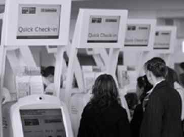 Beim Self-Check-in steht man auch zweimal in der SchlangeZürich - Wer mit Swiss in der Economy-Klasse fliegt, muss seit heute selber einchecken. Das soll die Wartezeiten vor dem Abflug verkürzen. Die Passagiere nehmen es gelassen - solange der Automat das tut, was sie von ihm verlangen.tri / Quelle: sda / Donnerstag, 30. Juli 2009 / 14:44 h