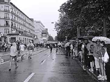 ![]() Viele Teilnehmer der Street Parade standen etwas verloren im Regen. /