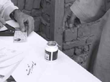 Kandidatur zurückgezogen Unterdessen zogen weitere Präsidentschaftsbewerber ihre Kandidatur zurück. Vier Politiker erklärten vor Medienvertretern zugunsten von Karsai auf ihre Teilnahme an der Abstimmung zu verzichten. Damit stellen sich nur noch 31 der ursprünglich 41 Kandidaten den etwa 17 Millionen Wahlberechtigten. Wählen mit dem Finger: Wahlhelfer bereiten im ganzen Land die Bevölkerung auf die anstehenden Wahlen vor. (Archivbild) /