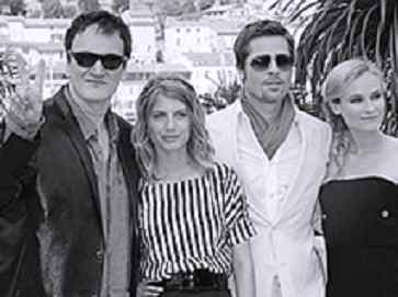 Kiffen für den neuen Film: Quentin Tarantino und Brad Pitt mit ihren Kolleginnen Mélanie Laurent (l.) und Diane Kruger. / Foto: Hans Heinz people-press.ch