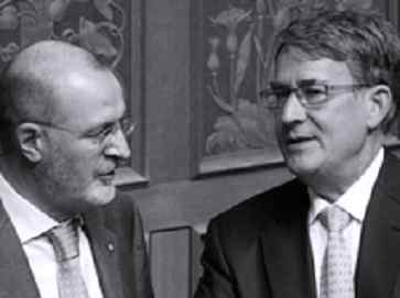 Schwaller: Gestärkte CVP Für Wahlverlierer Urs Schwaller geht die CVP gestärkt aus der Bundesratswahl hervor. «Wir werden offensiver den je politisieren», sagte er gegenüber SF.Fulvio Pelli unterhält sich mit dem unterlegenen Urs Schwaller. /