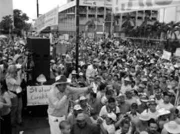 ![]() Am Mittwoch hatte der brasilianische Staatschef Luiz Inacio Lula da Silva den UNO-Sicherheitsrat aufgefordert, die Krise in Honduras zum Thema zu machen. Nach der Aufhebung einer am Montag verhängten landesweiten Ausgangssperre gingen in Honduras unterdessen tausende Demonstranten für und gegen Zelaya auf die Strasse. Unter Bewachung der Polizei versammelten sich am Donnerstag tausende Zelaya-Anhänger friedlich in der Nähe einer Kirche in Tegucigalpa. Tausende Unterstützer von Übergangspräsident Roberto Micheletti zogen mit honduranischen Flaggen und weissen Hemden durch die Strassen der Hauptstadt.