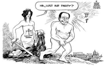 Die nackte WahrheitDie nackte Wahrheit ist, dass die Welt einfach ungerecht ist. Während der amerikanische Schönfärber Barack seinen Friedensnobelpreis auf Vorrat kassiert, kassiert in Italien eine ähnliche Jurytruppe seniler Tattergreise wie das Nobelkomitee die Immunität des grossen, des einzigen, des wahren Silvio B.mr / Quelle: Nebelspalter / Freitag, 9. Oktober 2009 / 15:34 h