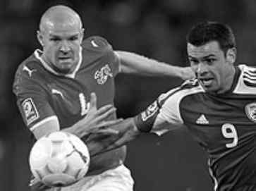 Schweiz - Israel 0:0 St.-Jakob-Park, Basel. - 38 500 Zuschauer (ausverkauft). - SR Tudor (Rum). Schweiz: Wölfli; Lichtsteiner, Senderos, Grichting, Spycher; Padalino, Fernandes, Inler, Barnetta; Nkufo, Derdiyok (70. Frei). Israel: Aouate; Saban, Ben Haim, Strul, Ziv; Yadin; Barda (85. Vermouth), Kayal, Cohen, Benayoun; Collauti (69. Schechter). Bemerkungen: Schweiz ohne Benaglio (krank). Israel ohne Ben Sahar und Dayan (beide gesperrt). Nicht eingesetzt: Leoni; von Bergen, Ziegler; Huggel, Vonlanthen, Yakin. Auf der Tribüne: Pirmin Schwegler. Gelb-Rot: 59. Yadin (Foul). Verwarnungen: 25. Die Mannschaft feiert mit den Fans. /