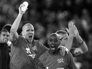 ![]() Philippe Senderos und Gelson Fernandos mit unbändiger Freude. /