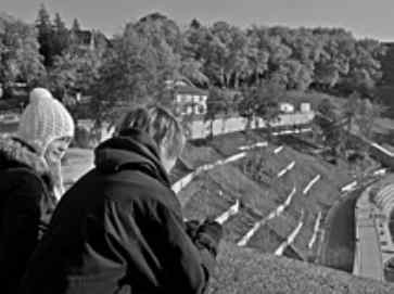 Touristen studieren die neue Anlage des Berner Baerenparks am Aareufer. /