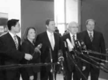 Guido Westerwelle und der FDP-Bundesvorstand vor den Medien. /