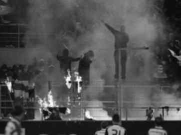 ![]() In St. Gallen brannten GC-Fans Fahnen und Transparente ab - das Spiel endete 1:0 für St. Gallen. /