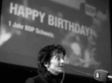 ![]() Erfolgsmodell der BDP: Bundesrätin Eveline Widmer-Schlumpf bei ihren Ausführungen zur Minarett-Initiative. /