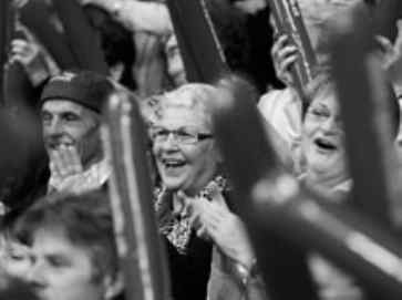 ![]() Zuschauer klatschen begeistert Applaus. /
