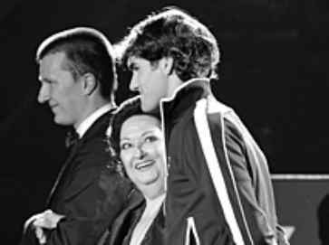 ![]() Roger Federer heute mit Monserrat Caballe vor der Eröffnungsfeier. /