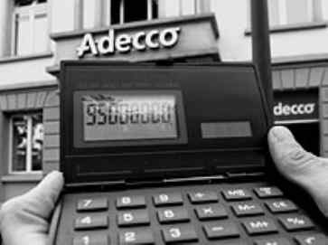Stark abhängigig vom Konjunkturverlauf wie Personalvermittler allgemein sind, gingen die Umsätze zwischen Juli und September erneut zurück, allerdings weniger stark als zuvor: Mit 3,72 Mrd. Euro nahm Adecco 27 Prozent weniger ein als vor einem Jahr, der Gewinn reduzierte sich um 46 Prozent auf 90 Mio. Euro.