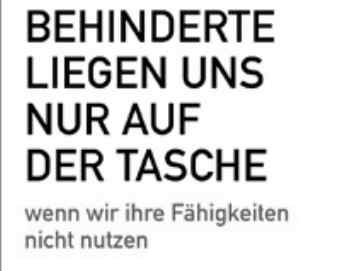 ![]() Nun kam diese aber früher. Die Aufschrift wurde ergänzt, neu heisst es: «Behinderte liegen uns nur auf der Tasche - wenn wir ihre Fähigkeiten nicht nutzen.» Schuss nach hinten? In einer Umfrage von news.ch wurde die Aktion als sehr negativ beurteilt. Ja sogar als «Sauerei» empfunden. Auch die Behindertenorganisation Pro Infirmis kritisiert diese anonymen Affichen.