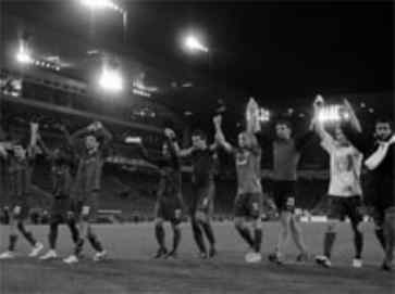 HSV mit guten Chancen Der Hamburger SV konnte sich beim 0:0 gegen Celtic Glasgow bei ihrem Torhüter Frank Rost bedanken, der sein Team in der ersten Halbzeit zweimal glänzend vor einem Rückstand durch Scott McDonald bewahrte. Trotz des enttäuschenden Unentschiedens gegen Tabellenschlusslicht Celtic Glasgow hat der HSV in der Gruppe C gute Chancen auf den Einzug in die Zwischenrunde. Den Norddeutschen reicht hierfür ein Heimsieg am nächsten Spieltag gegen Rapid Wien. Die Wiener haben derweil ihre gute Ausgangslage mit vier Punkten in den ersten zwei Spielen nach der zweiten klaren Niederlage gegen Hapoel Tel Aviv verspielt. Nach dem 0:3 im Ernst-Happel-Stadion gegen die Israelis braucht Rapid Anfang Dezember beim Gastspiel in Hamburg einen ähnlichen Exploit wie Mitte September, als der Bundesligist zuhause 3:0 abgefertigt wurde.Lazio Rom in Bedrängnis Bereits für die K.o.-Phase qualifiziert haben sich Werder Bremen (2:0 gegen Austria Wien), Galatasary Istanbul (3:0 bei Dinamo Bukarest) sowie Titelverteidiger Schachtjor Donezk, das in der Gruppe J nach dem 2:0-Sieg bei Toulouse die Tabelle mit dem Punktemaximum anführt. Beste Chancen auf ein Weiterkommen haben nach dem 4. Spieltag auch Salzburg (1:0 bei Levski Sofia), Ajax Amsterdam (2:0 bei Dinamo Zagreb) sowie der RSC Anderlecht (3:1 gegen Timisoara). Sollte der Protest von Dinamo Zagreb gegen den Abzug von drei Punkten wegen Fanausschreitungen abgewiesen werden, hätte sich auch Anderlecht vorzeitig für die nächste Runde qualifiziert. Um die Zwischenrunde mehr denn je zittern muss Stephan Lichtsteiner mit Lazio Rom. Die Italiener unterlagen auswärts dem FC Villarreal nach einer desaströsen Vorstellung 1:4.Gruppe A: Dinamo Zagreb - Ajax Amsterdam 0:2 (0:2). Anderlecht - Timisoara 3:1 (1:0). Rangliste (je 4 Spiele): 1. Anderlecht 8 (6:2). 2. Ajax Amsterdam 8 (5:2). 3. Timisoara 2. 4. Dinamo Zagreb 0 (4:6). Gruppe B: Slavia Prag - Valencia 2:2 (0:1). Genoa - Lille 3:2 (1:0). Rangliste (je 4 Spiele): 1. Lille 7. 2. Valencia 6 (7:6). 3. Genoa 6 (7:8). 4. Slavia Prag 2 (4:10). Gruppe C: Rapid Wien - Hapoel Tel Aviv 0:3 (0:1). Hamburger SV - Celtic Glasgow 0:0. Rangliste (je 4 Spiele): 1. Hapoel Tel Aviv 9. 2. Hamburger SV 7. 3. Rapid Wien 4. 4. Celtic Glasgow 2 (2:4). Gruppe D: Sporting Lissabon - Ventspils 1:1 (1:1). Heerenveen - Hertha Berlin 2:3 (2:1). Rangliste (je 4 Spiele): 1. Sporting Lissabon 10. 2. Heerenveen 4 (5:6). 3. Hertha Berlin 4 (4:5). 4. Ventspils 3 (3:4). Gruppe E: AS Roma - Fulham 2:1 (0:1). Basel - CSKA Sofia 3:1 (2:0). Rangliste (je 4 Spiele): 1. Basel 9. 2. AS Roma 7. 3. Fulham 5. 4. CSKA Sofia 1 (2:8). Gruppe F: Sturm Graz - Panathinaikos Athen 0:1 (0:0). Dinamo Bukarest - Galatasaray Istanbul 0:3 (0:2). Die Spieler des FC Basels bedanken sich nach dem Sieg bei den Fans. /