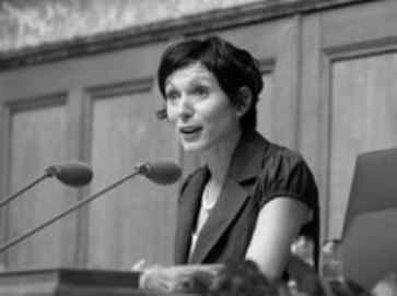 Die neu gewählte Nationalratspräsidentin Pascale Bruderer Wyss spricht am offiziellen Festakt im Kultur- und Kongresszentrum Aarau. /