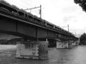 Die Eisenbahnbrücke in Basel. /