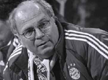 ![]() Vier Jahre hatte sich der Welt- und Europameister mit seinem maladen Knie herumgeplagt und seinen Traumberuf als Profi für sich viel zu früh beendet. Dann trat er 27-jährige als jüngster Manager die Nachfolge von Robert Schwan an. Ein gutes Herz Das meiste in Hoeness´ Amtszeit klappte danach wie am Schnürchen, leicht hatte es der erste Fan im Verein jedoch auch nicht immer. Die Musterkarriere des Metzger-Sohnes, dessen eigene Wurstfabrik mittlerweile dessen Sohn führt, wäre im Jahre 2000 vielleicht schlagzeilenträchtig zu Bruch gegangen, hätte Christoph Daum in dessen Kokain-Affäre nach den öffentlichen Anmerkungen von Hoeness nicht freiwillig den für ihn verheerenden Haartest gemacht. «Wenn der nicht die Probe macht, bin ich kaputt», betonte der Vater von zwei Kindern, der damals Drohbriefe gegen sich und die Familie erhielt. Ein Schock war für die Manager-Familie auch der Flugzeug-Absturz im Februar 1982, den Hoeness als einziger von vier Insassen überlebte. Der künftige Präsident und Aufsichtsratsvorsitzende ist aber nicht nur der unerschrockene Geschäftsmann, sondern auch da, wenn andere Leute Ärger haben. So half er in den Achtzigerjahren dem vom Wege abgekommenen Gerd Müller zurück in die Spur - wie zahlreiche Altgediente steht der «Bomber» heute in Lohn und Brot beim Hoeness-Klub. Auch für die Spieler, wie dem damals unter Depressionen leidenden Sebastian Deisler, hatte und hat der Chef immer ein offenes Ohr. Mehmet Scholl sagte darum einmal scherzhaft über seinen Wunsch im nächsten Leben, «Hund bei Uli Hoeness» werden zu wollen.«Knallhart und trotzdem menschlich» Ottmar Hitzfeld hatte in den siebeneinhalb Jahren als Trainer von Bayern München intensiven Kontakt mit dem heute als Manager abtretenden Uli Hoeness. Die Zusammenarbeit mit ihm, die zu zehn Titeln führte, behält der Schweizer Nationalcoach in bester Erinnerung. «Uli Hoeness war immer ein Frontkämpfer, einer, der stets mitten im Geschehen war, der Höhen und Tiefen hautnah mitkriegte und miterlebte. Dank seiner grossen Sach-, Fach- und sozialen Kompetenz hatte er auch immer einen engen Kontakt zur Mannschaft, einen guten Draht. Für mich als Trainer des FC Bayern München war Uli Hoeness jederzeit ein grosser Rückhalt. Auf ihn und sein Wort war immer zu 100 Prozent Verlass. Er war gleichzeitig knallhart und trotzdem menschlich. Sein grosses Herz, seine Menschlichkeit zeigt sich sehr oft auch darin, dass er sich für hilfsbedürftige Menschen einsetzt und entsprechende Institutionen unterstützt.»