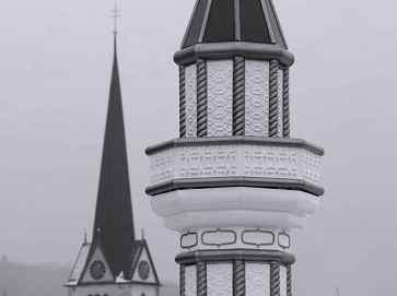 ![]() Unter 60 Prozent stimmten der Initiative in den Kantonen Zürich, Basel-Land, Graubünden, Freiburg, Wallis und Jura zu. Gefährdung des religiösen Friedens Das Ja erstaunt umso mehr, als sich nicht einmal die SVP geschlossen für das Minarett-Verbot einsetzte. Mit Ausnahme der SVP und der EDU hatten sich zudem alle Parteien gegen die Initiative ausgesprochen. Auch der Bundesrat und das Parlament lehnten die Initiative für ein Verbot von Minaretten ab. Ein Ja würde die Religionsfreiheit verletzen und den religiösen Frieden in der Schweiz gefährden, argumentierten die Gegner. Die Befürworter gaben an, mit der Initiative gegen eine zunehmende «Islamisierung» kämpfen zu wollen. Sie sehen in Minaretten Symbole für einen Machtanspruch des Islams. Zu reden gaben im Abstimmungskampf insbesondere die Plakate der Befürworter. Sie stellten vor dem Hintergrund der Schweizer Fahne Minarette dar, die an Raketen erinnerten.