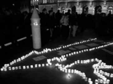 ![]() Viele Kerzen brannten auch während der Kundgebung in Zürich. Bei friedlicher Stimmung wurden über ein Dutzend Minarette aus verschiedensten Materialien aufgebaut. Auf Transparenten wurde Religionsfreiheit gefordert. «Integrieren statt Ausgrenzen» war da zu lesen. Oder «Der Himmel über der Schweiz ist gross genug».