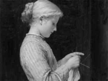 Ausschnitt aus dem Gemälde «Strickendes Mädchen» von Albert Anker. / Foto: kollerauktionen.ch