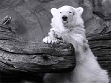 ![]() Die junge Eisbärin stürzte sich sofort auf die Reste der Eistorte. Als das Geburtstagskind zu seiner Torte zurück wollte, biss Gianna ihn weg. Dennoch zeigte sich Kühne zuversichtlich, was die Eisbärenfreundschaft angeht. «Es ist ein Glücksfall mit Knut und Gianna. Nachdem er anfangs doch etwas ängstlich war, sind die beiden jetzt auf Vollkontakt und spielen regelrecht miteinander.» Gianna, die aus dem Münchener Zoo nach Berlin kam, war am 28. November drei Jahre alt geworden. Das Schicksal Knuts verfolgen seit seiner Geburt Menschen weltweit mit grossem Interesse. Der Bär war am 5. Dezember 2006 geboren und von seiner Mutter Tosca verstossen worden. Sein Pfleger Thomas Dörflein zog ihn liebevoll mit Spezialmilch und Katzenfutter auf.