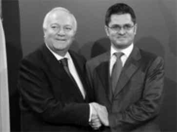 ![]() Sein serbischer Amtskollege Vuk Jeremic dankte dem spanischen Gast mit Anspielung auf dessen Vornamen (Angel ist Engel): «Moratinos ist serbischer Schutzengel auf der internationalen politischen Bühne.» Moratinos wurde zum Ehrenbürger Belgrads erklärt. Er hatte vor einem Vierteljahrhundert in der damaligen jugoslawischen Hauptstadt seine diplomatische Laufbahn begonnen.