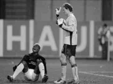 Jens Lehmann (rechts) wurde nach seiner Tätlichkeit gegen Aristide Bancé für drei Spiele gesperrt. /