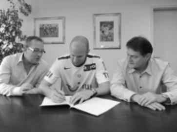 ![]() Hier unterzeichnet Ludovic Magnin (mitte) in Beisein von Fredy Bickel (links) und Ancillo Canepa seinen Vertrag. /