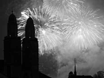 Auf den Champs-Elysées feierten 200'000 weitere Menschen in das neue Jahr. Traditionelles Glockengeläut in der Schweiz Auch in anderen europäischen Metropolen strömten Menschenmassen zu den öffentlichen Feiern. In London erleuchtete ein Grossfeuerwerk an der Themse das Riesenrad «London Eye», das mehr als 200'000 Menschen gebannt verfolgten. In Moskau drängten sich 120'000 Menschen auf dem Roten Platz, in Warschau besuchten rund 90'000 Menschen ein Open-Air-Konzert zur Erinnerung an den im Sommer verstorbenen US-Popstar Michael Jackson. In der Schweiz wurde das neue Jahr mit dem traditionellen Glockengeläut empfangen. Auf der grössten Silvesterparty des Landes in Zürich bestaunten rund 200'000 Menschen ein Lichtspektakel im Seebecken. Über 6600 Feuerwerkskörper wurden per Computer von Schiffen aus gezündet. Auch in Basel wurde das neue Jahr mit einem Feuerwerk gefeiert.