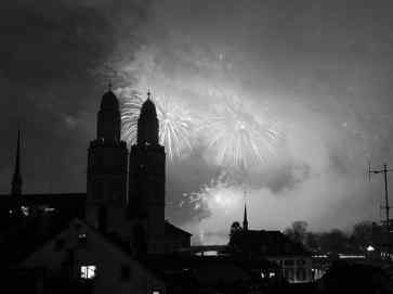 Dank des guten Wetters seien die Leute auch nach dem Feuerwerk auf dem Festgelände geblieben. Private initiierte Pyro-Spektakel Die Feier sei sehr friedlich verlaufen, sagte Irniger. Die Leute hätten dank eines Aufrufs der Polizei spürbar weniger privates Feuerwerk mitgebracht; so sei die Gefährdung der Feiernden deutlich verringert worden. In Basel fand das am Rheinknie privat initiierte Pyro-Spektakel heuer zum zehnten Mal statt. Eine Stunde vor dem Feuerwerk, das um halb eins begann, spielte auf dem Münsterplatz der Stadtposaunenchor für all jene, die einen besinnlichen Jahreswechsel feiern wollten. Traditionsgemäss wurde das alte Jahr dann zwischen 23.45 und 23.55 Uhr mit der grossen Glocke des Martinsturms des Münsters ausgeläutet. Alle Glocken der Stadt läuteten anschliessend das neue Jahr ein. Nach Mitternacht fand ein kurzer Gottesdienst im Münster statt.