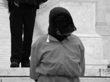 ![]() Demonstrant in Washington D.C., der gegen das Gefangenenlager Guantánamo protestiert. /