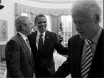 Ex-Präsidenten helfen vereint Zugleich begannen die ehemaligen US-Präsidenten George W. Bush und Bill Clinton mit einer grossangelegten Spendensammlung für die Erdbebenopfer. Präsident Barack Obama, der seine Vorgänger mit der Koordination der Spendenhilfe beauftragt hatte, empfing die beiden am Samstag im Weissen Haus. «Vor uns liegen schwierige Tage», sagte Obama.Treffen der Generationen. /