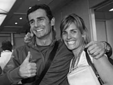Steckbrief: Pedro de la Rosa. Geboren am 24. Februar 1971 in Barcelona. 1,77 m gross, 74 kg schwer. Mit seiner Frau Maria Reyes und den drei Töchtern Georgina, Olivia und Luna lebt er seit einigen Jahren schon in Zürich. Erst als 17-Jähriger ist er in den Kartsport eingestiegen. Der spanische Pilot Pedro de la Rosa mit seiner Frau Maria. / Foto: EQ Images