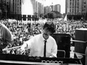 ![]() Julius Krebs bei einem Konzert in den 80er Jahren am Strausberger Platz in Ost-Berlin. /
